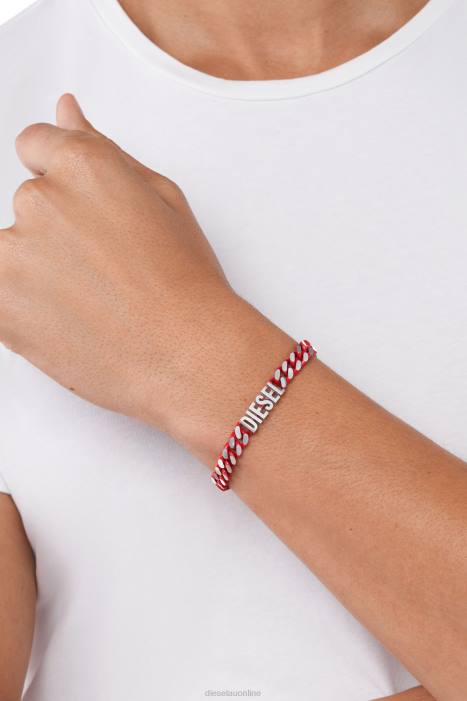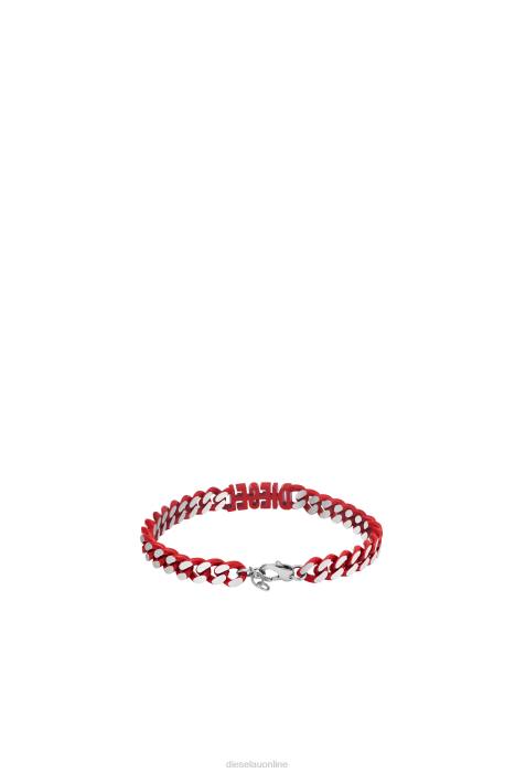 Diesel's chain bracelet features red stainless steel and a fold over closure.