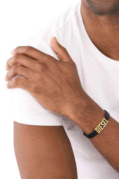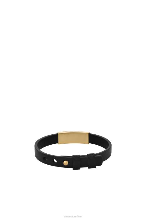 Diesel's stack bracelet features black leather, gold-tone stainless steel and a button stud closure.