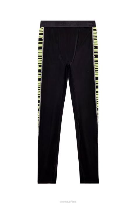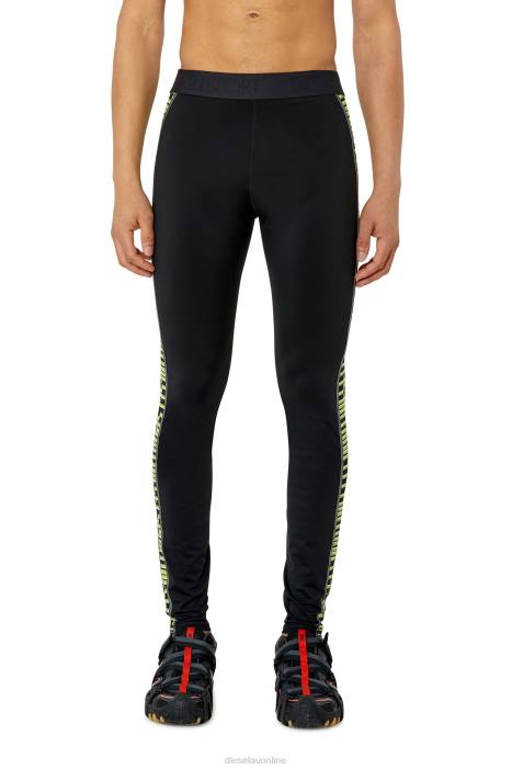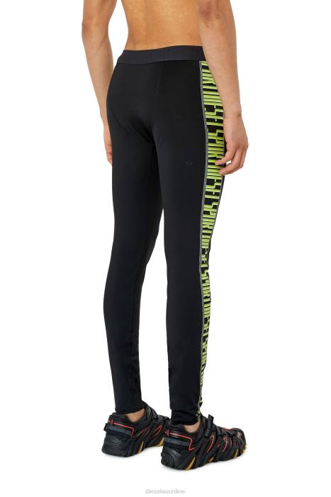 Men's leggings cut from black fabric with UV-resistant, quick-dry and sweat-wicking properties. Part of the DIESEL SPORT edit, they feature side panels with rave lettering. Styled with shiny lettering on the waist.