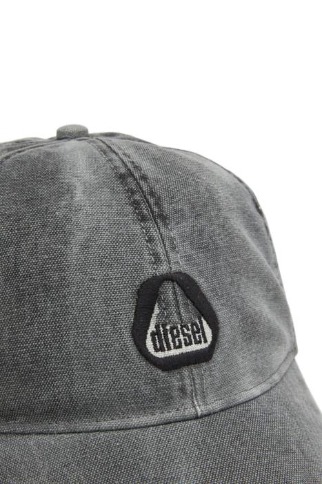 This men's baseball hat is built from cotton canvas, specially treated for a used look. The front is embellished with an embroidered Diesel utility logo.