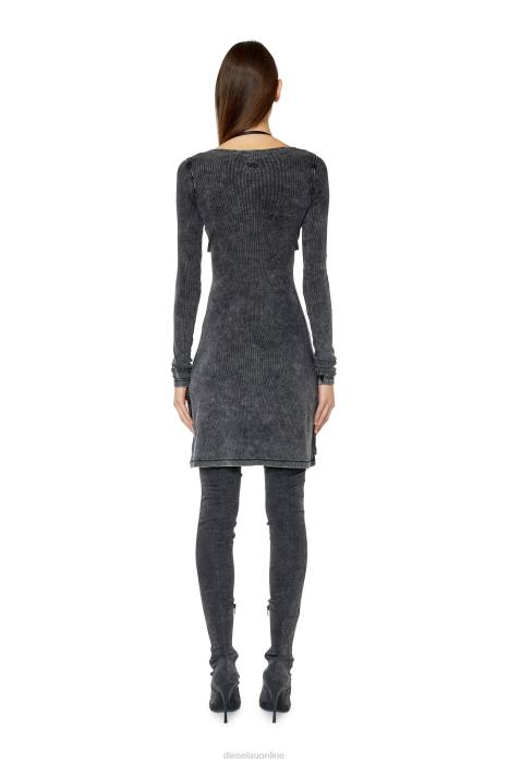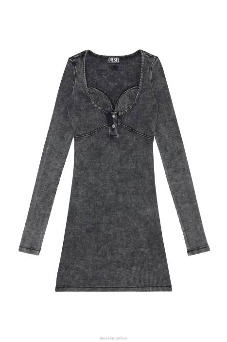 Short dress in lightly ribbed stretch cotton. Acid washed for a retro feel, it has a close yet flexible fit and a lace-trimmed balconette bra peeking out from the extra-deep Henley neckline.