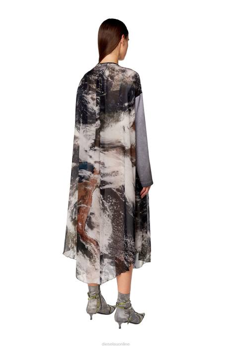 This women's kaftan dress is cut to a loose, flowy silhouette from printed chiffon, layered over a stretch slip dress. Contrasting sleeves in treated cotton jersey complete the design.