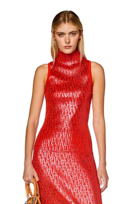 Women's ribbed cotton tank top, printed with a metallic Diesel monogram motif in a tonal shade. Slim-fit silhouette with a high neck.