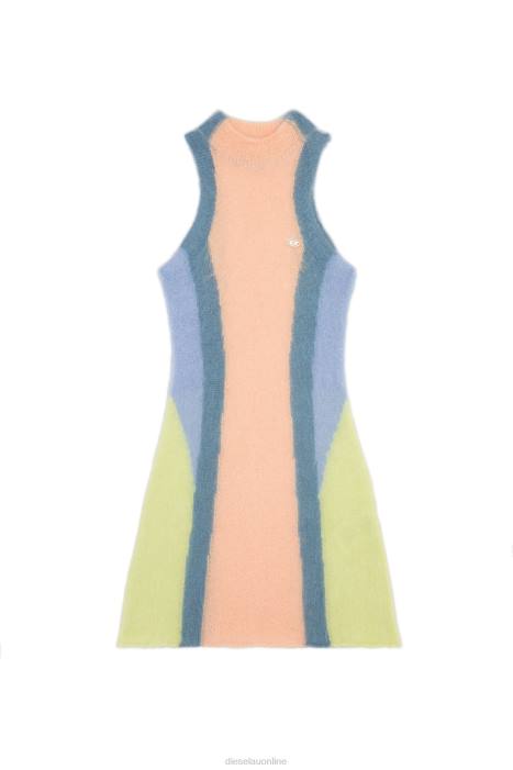 A cosy brushed knit, this short turtleneck dress has a close fit and a streamlining, colour-block design in pastel shades of yellow, blue and orange. It's spun from a mohair blend enriched with wool and detailed with a metal 'oval D' plaque.