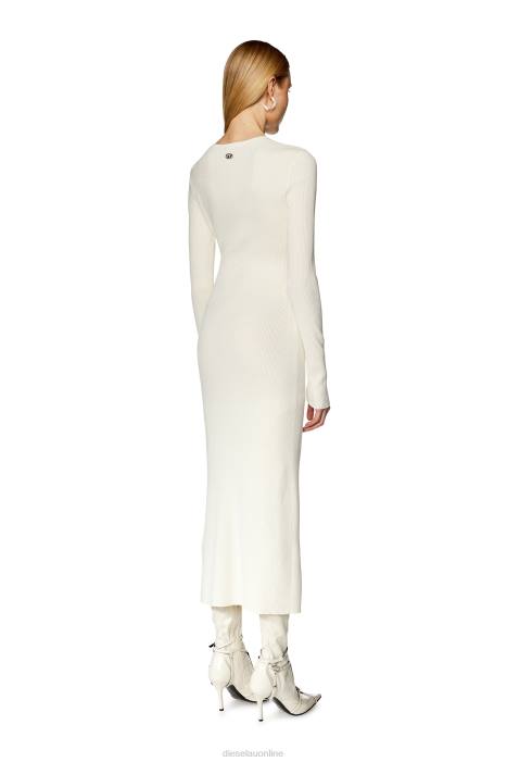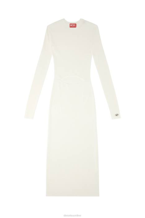 This women's long-sleeved dress features a soft, mid-length silhouette with a feminine cut-out motif at the slimmest part of the waist. It's crafted from a tone-on-tone viscose and wool blend that feels particularly light and fluid to the touch, in a plated ribbed knit that ensures it fits closely to the body. A small metal oval D plaque on the left cuff completes the design.