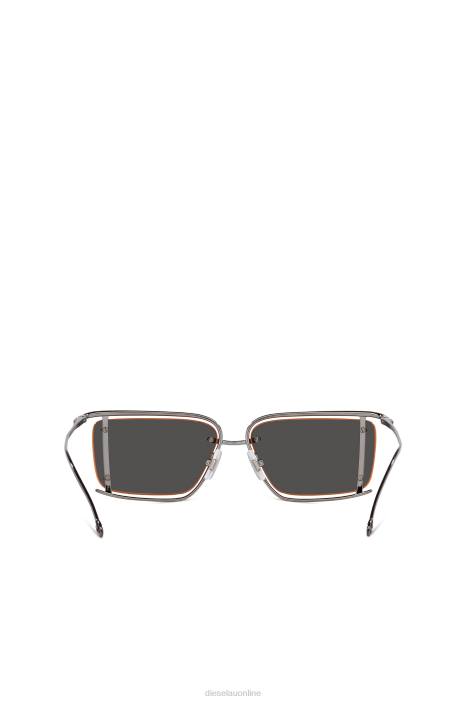 This rectangle and industrial model showcases floating lenses with a peculiar colored accent on the lenses' bevel and D logo engraved screw heads. Along with the entire collection, it features the distinctive metal double wire temples