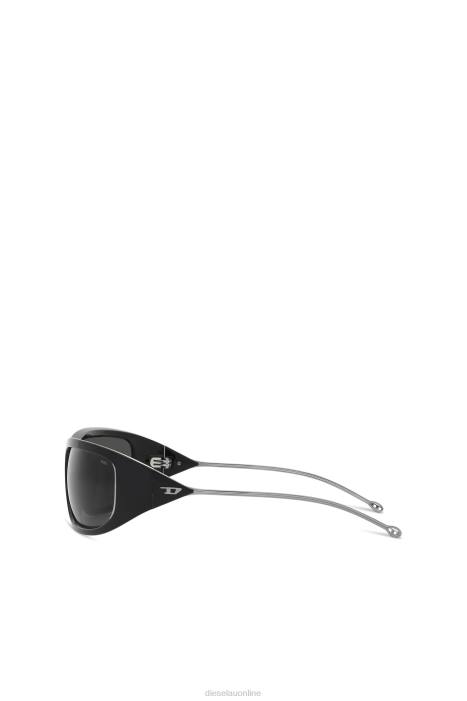 This signature model features a warparound style with metal brackets on the side of the lenses that create a very original effect. Identifying temples were designed for a quintessential Diesel flavour. The distinctive metal double wire temples ensure lightness and comfort and subtly twice display the iconic D Logo