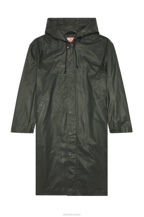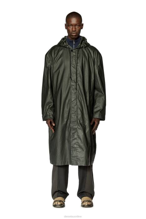 Regular-fit coat in cotton twill with a black coated finish. Unlined for lightness, the style is defined by a drawstring hood and a long, loose silhouette. An oversized oval D outline is embroidered on the back.