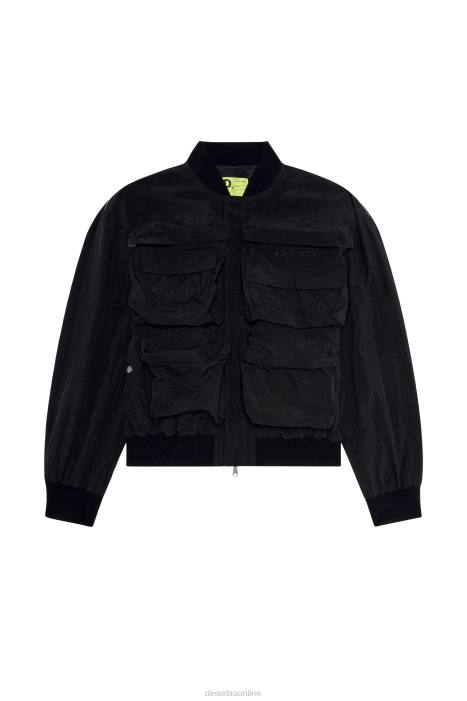 Built from black nylon with a crips, crinkled texture, this men's high-neck jacket is characterised by oversized cargo pockets on the front. Detailed with a tonal D.IES.EL embroidery.