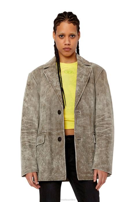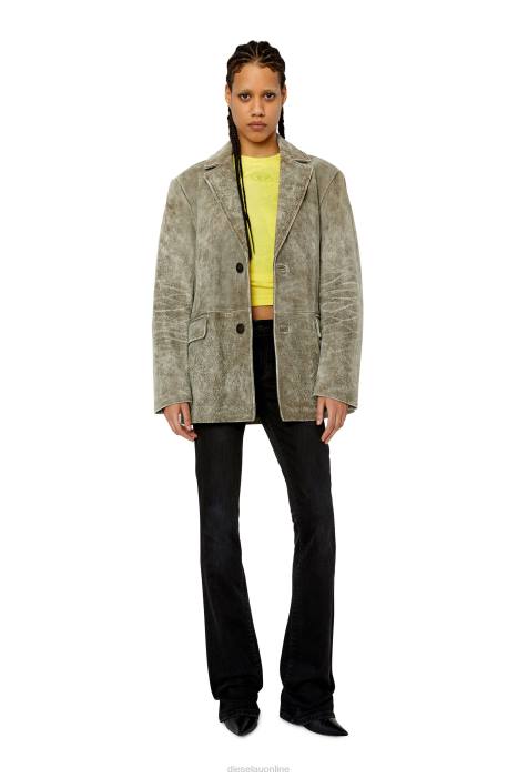 This unisex single-breasted jacket flaunts a tailored silhouette with notch lapels and flap pockets. Crafted from cracked leather with a tumbled finish, it's manually treated for a worn-in look.