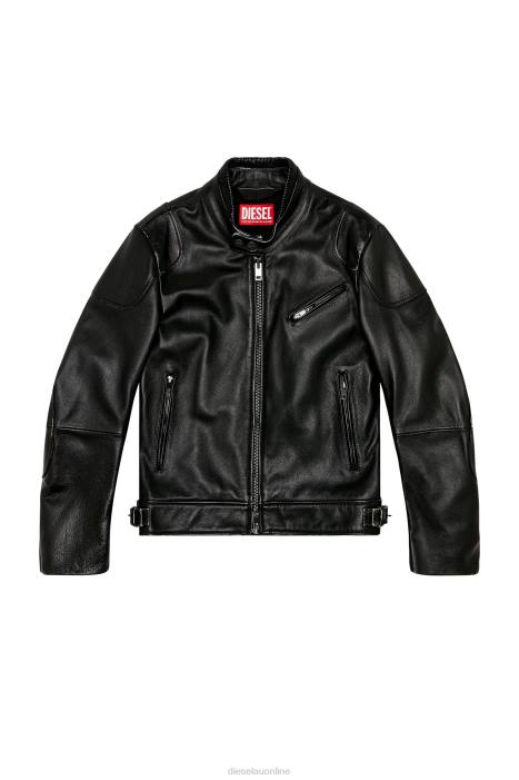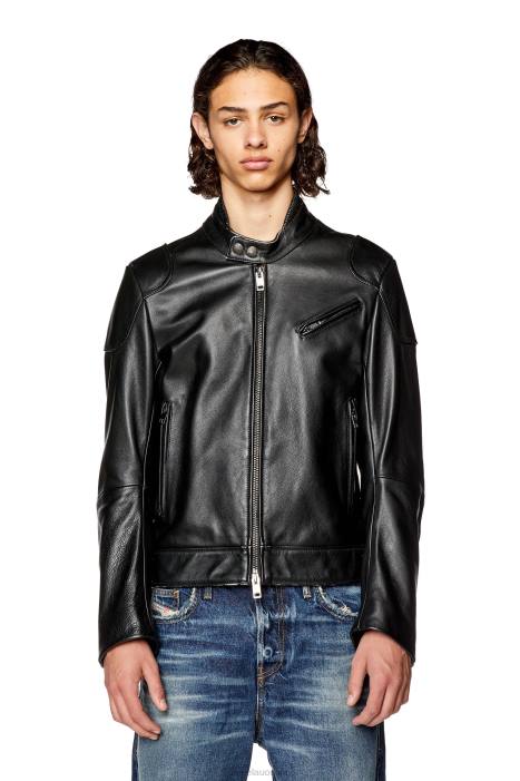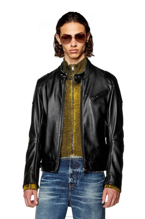 This men's biker jacket crafted from supple tumbled leather. The slim silhouette features needle-stitched panels on the neckline and across the back for added flexibility. Patch details at the shoulders and elbows enhance the moto-inspired look. Small abrasions lend a lived-in look and feel.