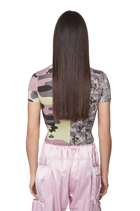 Rib-knitted from technical yarn and plated with Lycra for a compact feel, this slim-fit top is printed with mixed camo prints. The metal 'D' plaque creates a peek-a-boo effect, encrusted with Swarovski crystals.