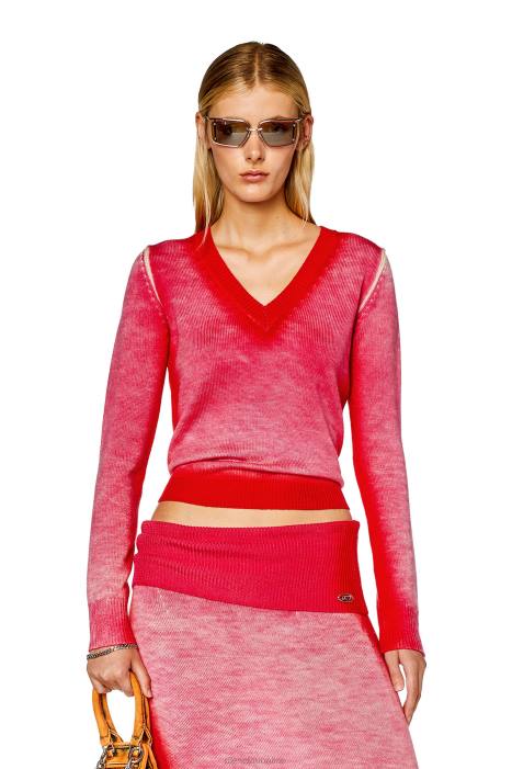 This women's regular-fit wool jumper is styled with an inside print that shows through only partly on the outside for a faded look. Spray-printed at the edges, it flaunts a V-neck and a metal oval D plaque on the back.
