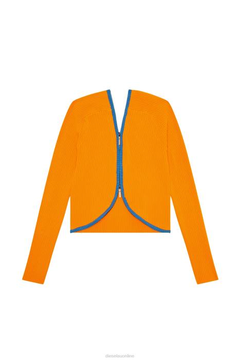 Women's cardigan with rounded hem, rib-knitted from a stretch viscose-nylon blend. The two-way zip closure can be styled to give its slim-fit profile a draped effect. Finished with contrast tubular trims and thumbholes.