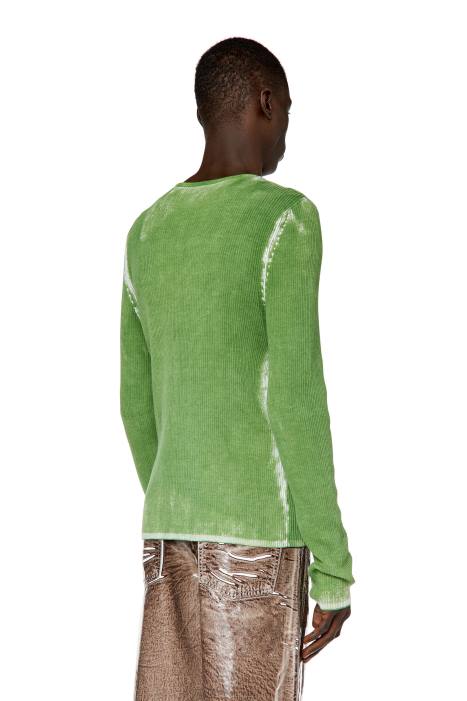 SPRING SUMMER 2023 RUNWAY SHOW collection. This men's long-sleeve top is knitted from a flexible cotton blend to hug the silhouette. Decorated with a logo graphic on the front, it has a zip-adjustable V-neckline and fading that makes the seams pop.