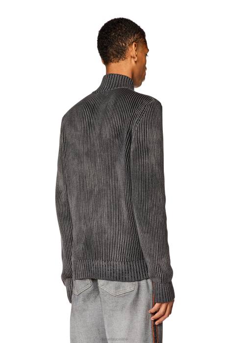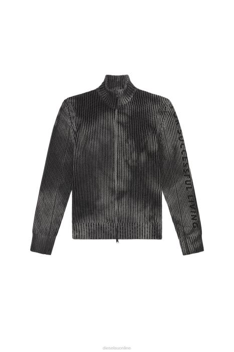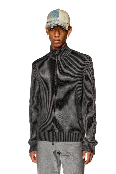 Men's cotton cardigan,rib-knitted using a plating technique in two colours and specially treated to give the colourway a used,blurry look. The regular-fit design is accented with black overlock stitching along the arms,"For Successful Living" print on the left sleeve,and a DSL zip puller.
