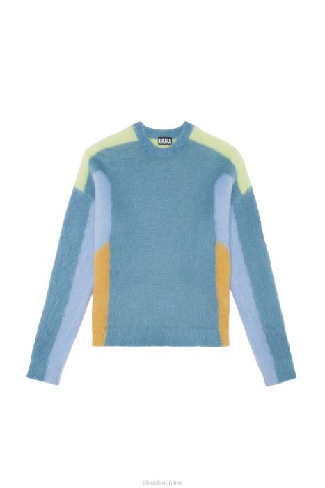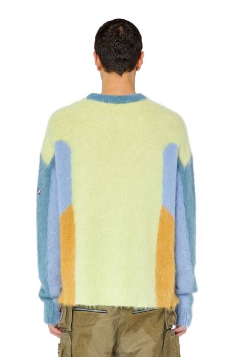 Men's oversized sweater spun from a mohair blend. Blocked in soft pastel hues that follow the silhouette, it has a cosy brushed handle and a logo patch on the sleeve.