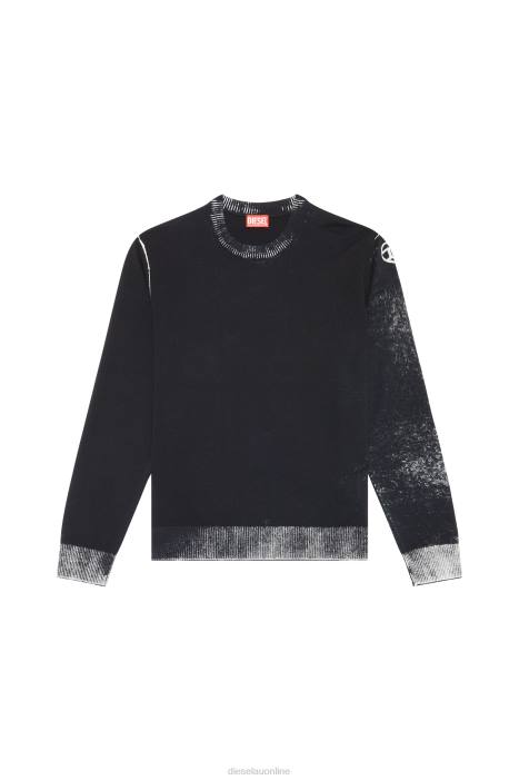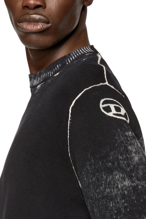 Men's crewneck pullover crafted from smooth gassed cotton yarn. Designed for a regular fit, the jumper has been specially printed on the inside, resulting in a softened, uneven colour. The effect of this technique is particularly visible on the ribbed trims and sleeves, where the tone is decidedly lighter.
