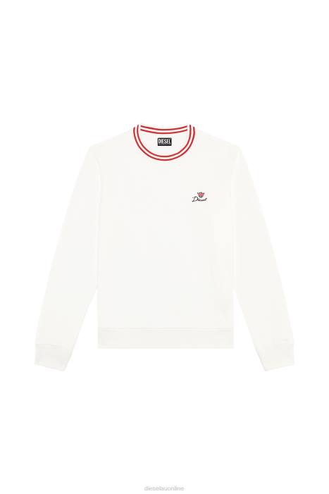 Men's regular fit sweatshirt cut from organic cotton jersey, updated with a striped rib-knit neck. The chest is embellished with a Diesel crown logo.