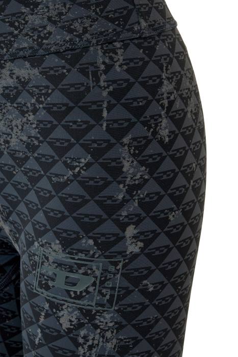 Women's DIESEL SPORT leggings, made from monogram fabric with sweat-wicking and UV-resistant properties. Styled with a wide waist band, they're printed with distressed-style reflective detailing and a logo graphic on the front.