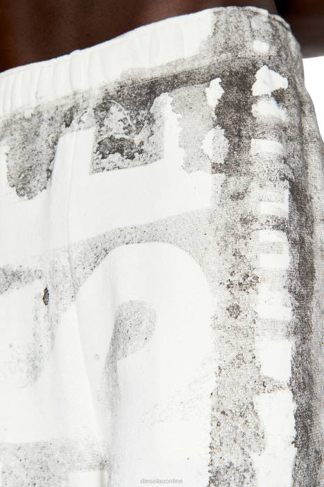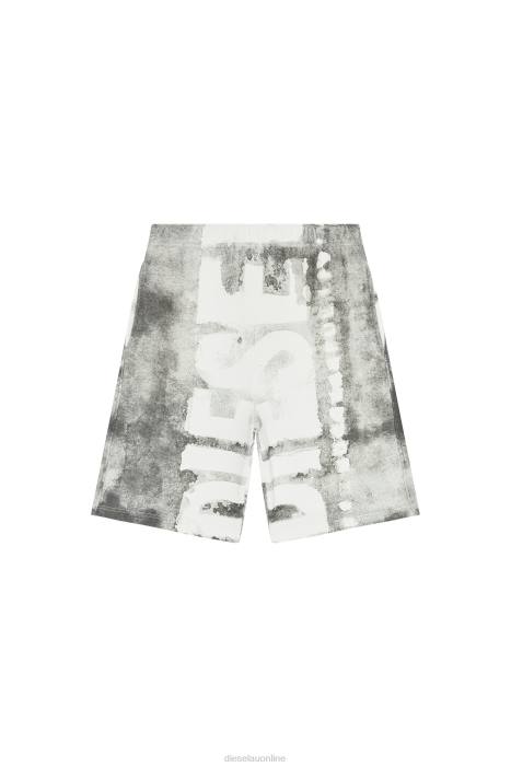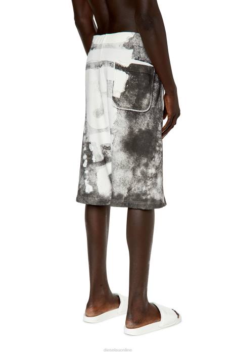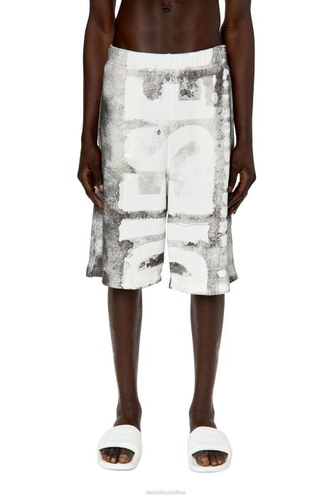 Men's regular-fit sweat shorts made from cotton jersey, featuring hidden side pockets and a drawstring waist. Printed with a bleeding-effect maxi Diesel logo and garment-dyed for a faded look.