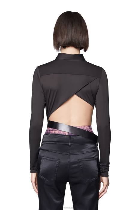 This cropped slim-fit shirt is cut from stretch ponte fabric. The bottom is twisted to form a loop for the interlaced treated denim belt, branded with a 'D' oval buckle.