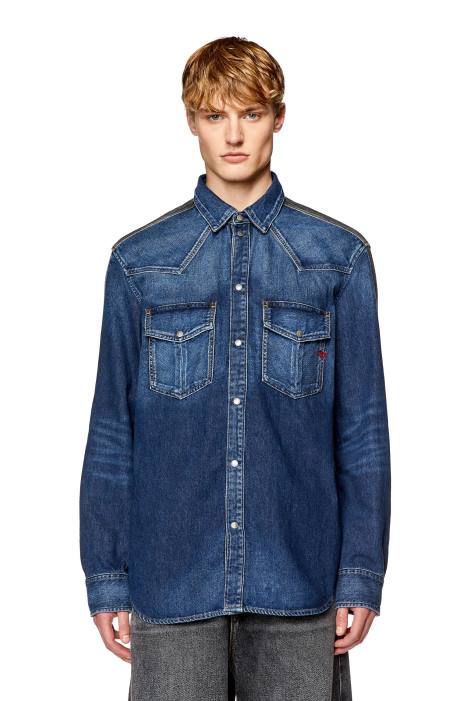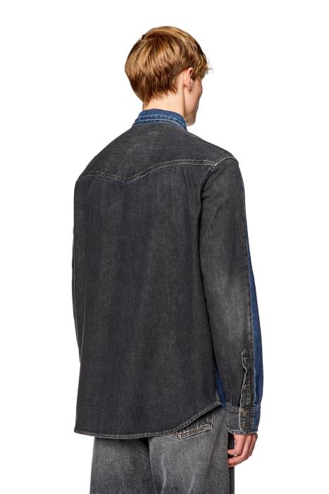 This men's Western shirt is cut to a regular fit and finished with a red embroidered D logo on the left chest pocket. Made from fix denim in two contrasting washes, treated dark blue on the front and black on the back panel.