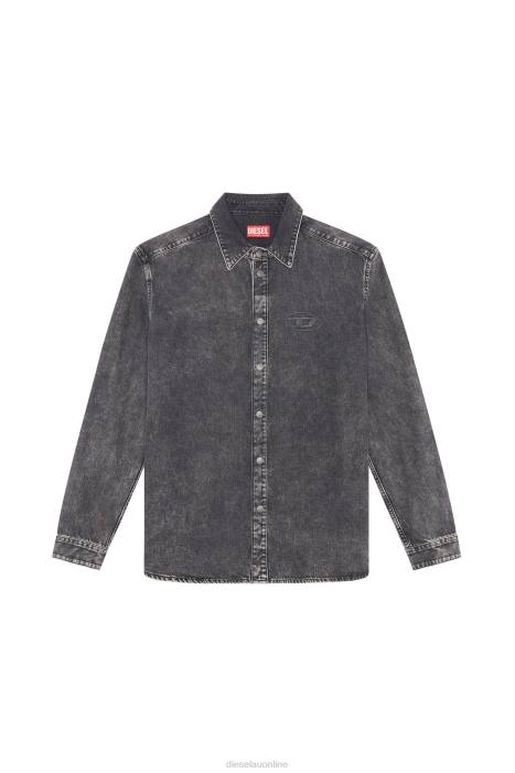 Men's regular-fit shirt crafted from grey fix denim. Detailed on the chest with an embossed 'oval D' logo.