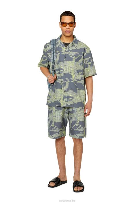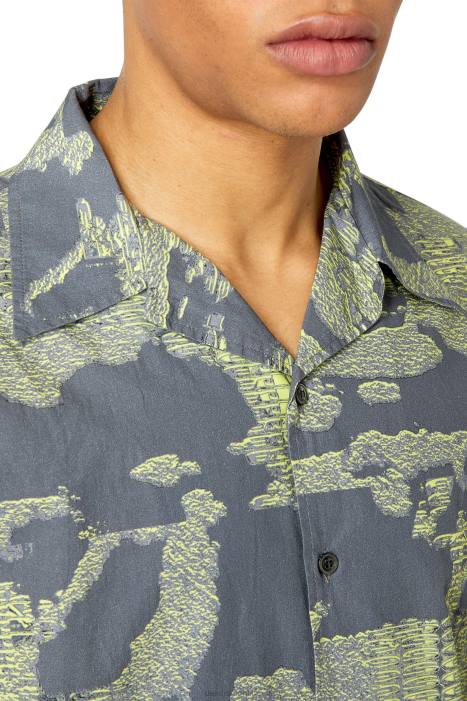 Men's regular-fit bowling shirt built from high-density cotton poplin. Printed all-over with a pixelated Diesel camouflage print.