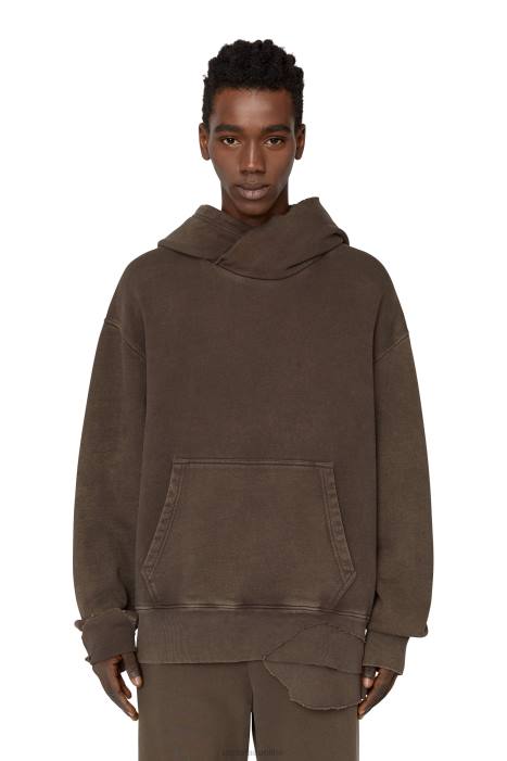 Men's FW22 Runway Show hooded sweatshirt, cut from brown cotton jersey. Treated for a faded look, this relaxed-fit style is double-layered and ripped at the hood, hem and cuffs. Embroidered with a tonal D logo on the sleeve. The red variant of this item is a limited edition.