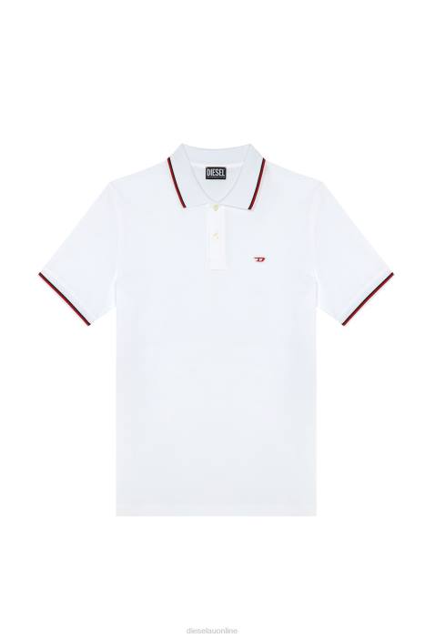Men's polo shirt crafted from organic cotton pique. This fitted style is detailed with stripped tipping and a subtle red 'D' patch at the chest.