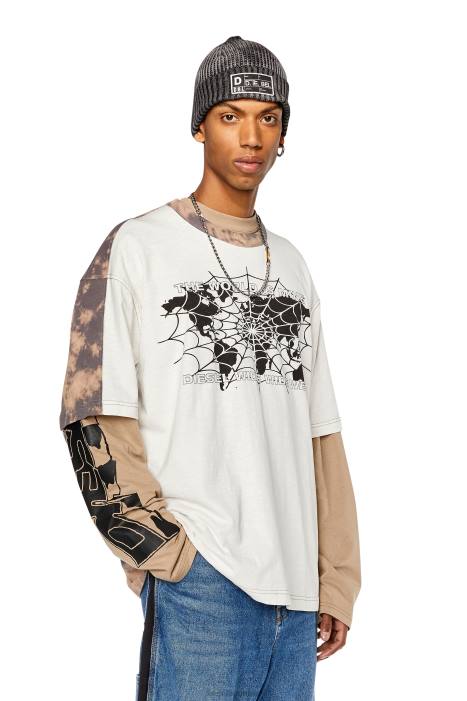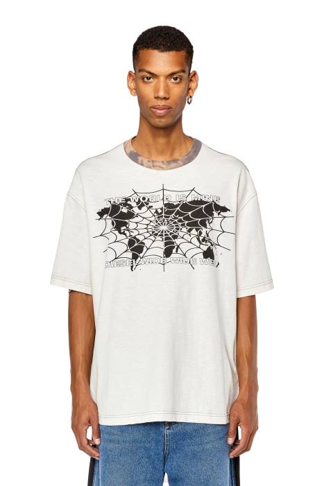 This men's loose-fit tee is cut from white slub cotton jersey. The back is updated with a marbled treatment, whilst the front is detailed with a 'Diesel Wide Wide Web' print.