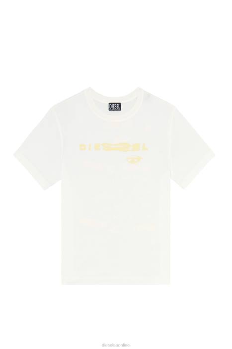 Women's loose-fit tee built from cotton jersey. The distorted Diesel lettering on the front and back is printed with a puffy finish. Garment-dyed for a faded look.