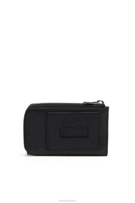 A key wallet and a card holder, this men's zipped pouch has an external quick-access card slot and a gusseted interior with an attached key ring. It's crafted from black grainy leather and subtly detailed with a red logo tag.