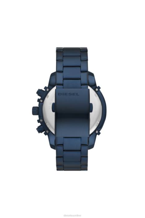 WARRANTYDiesel's 48mm Griffed watch features a silver sunray dial, chronograph movement and blue-tone stainless steel bracelet.