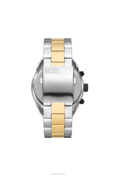 WARRANTYDiesel's 49mm Spiked watch features a black satin dial, chronograph movement and two-tone stainless steel bracelet.
